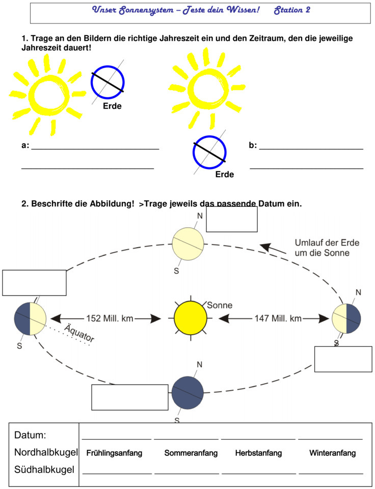 Übungsblatt zu Sonnensystem