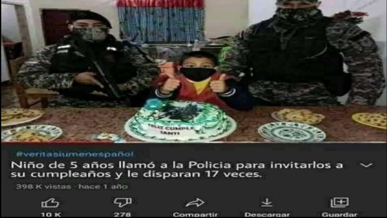 Niño de 5 años llamo a la Policía para invitarlos a su cumpleaños y le disparan 17 veces. YouTube