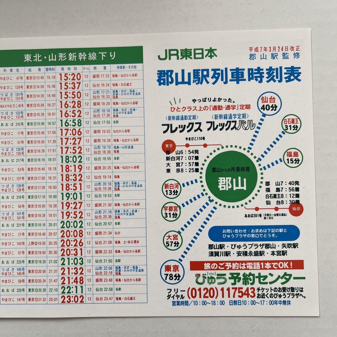 JR東日本 郡山駅列車時刻表 平成7年3月24日改正 メルカリ